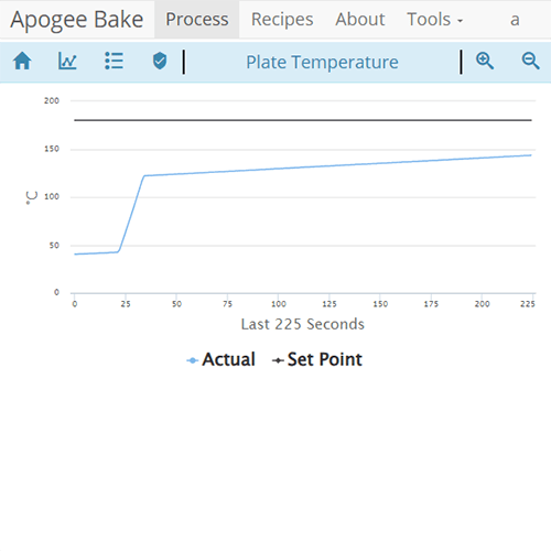 Access your Apogee® Bake Plate remotely via any web browser for real-time monitoring, adjustments, and recipe management. Create, modify, upload, download, and archive recipes seamlessly.